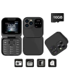 Mini Fold Mobile Phone i16 Pro, Dual SIM Card, Rádio FM, Vibração Voz Mágica, Lista Negra Speed Dial, 1,77" tela do telefone quadrado
